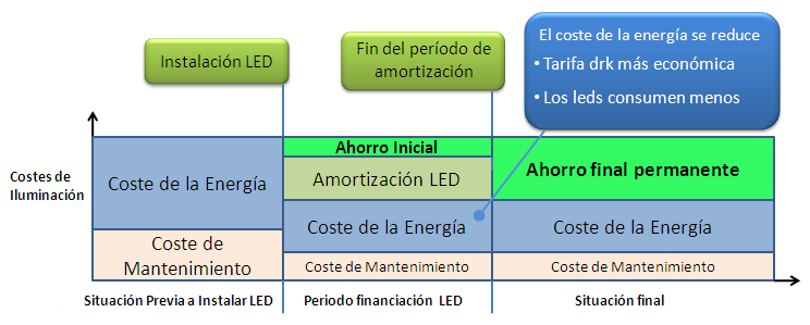 Financiamos el coste de implantación de su sistema LED mediante los ahorros generados en su factura eléctrica.
